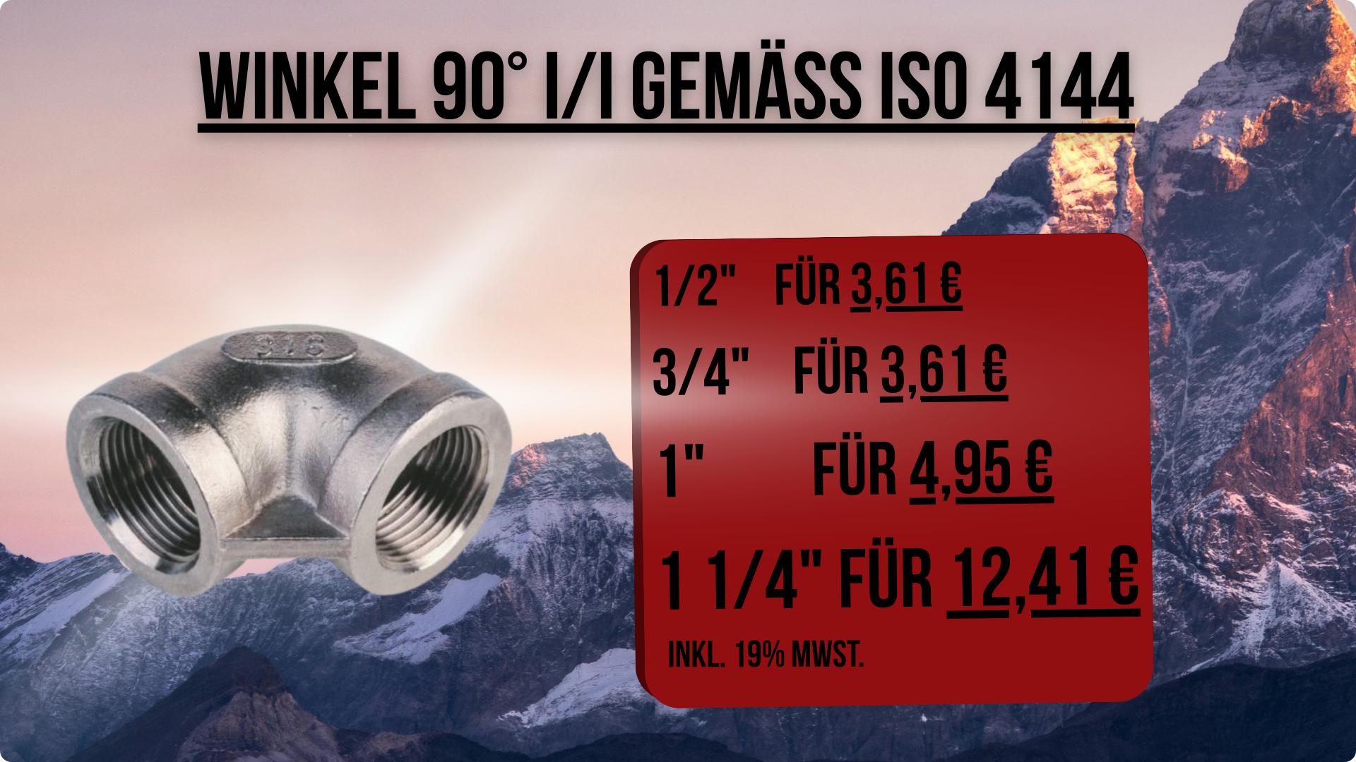 Diese Woche gibt's 10 % auf unseren 90° Winkel I/I gemäß ISO 4144.