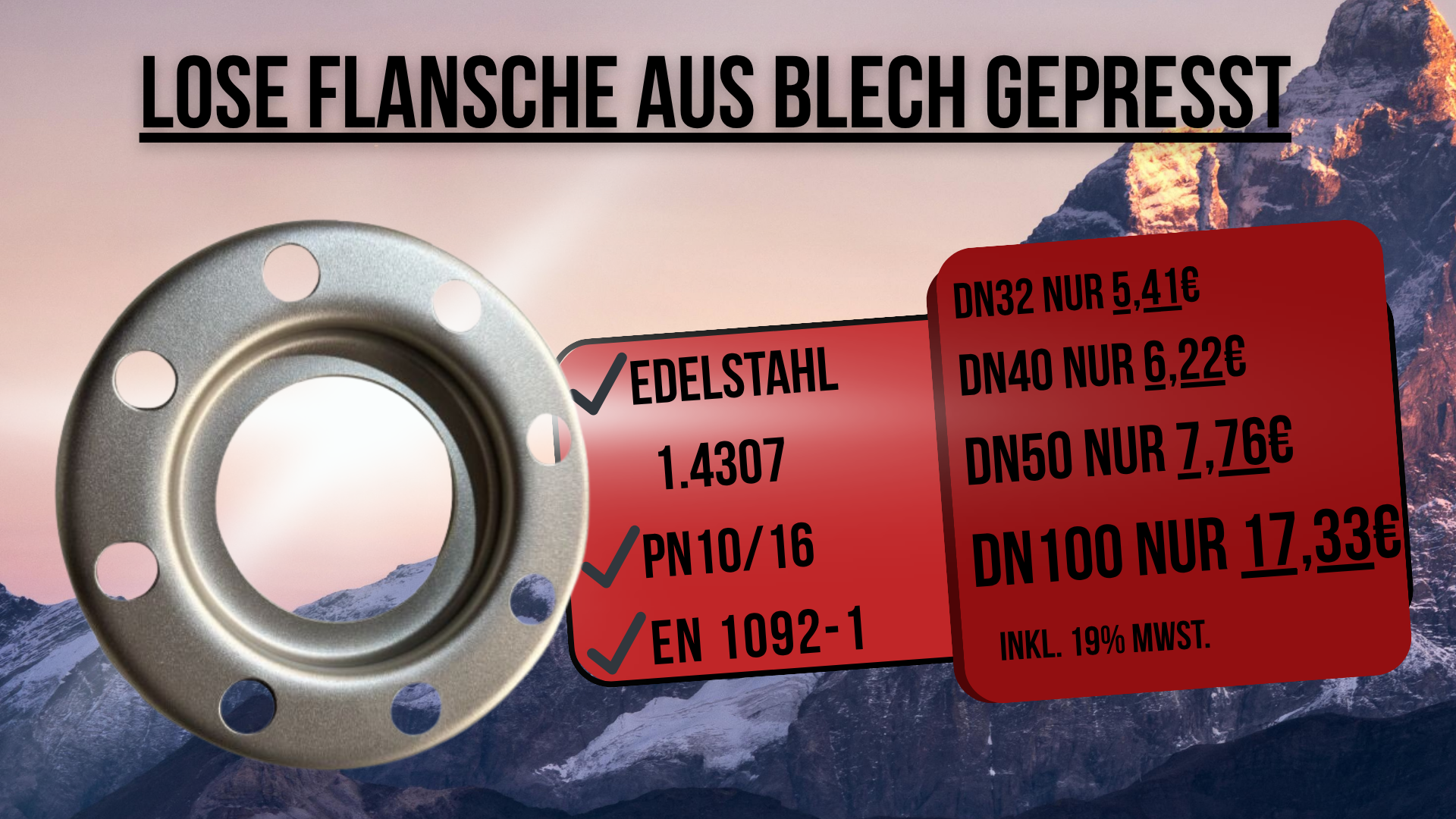 Profitiere jetzt von 10 % Preisnachlass auf unsere losen Flansche aus Edelstahl 1.4307 in den Größen DN32, 40, 50 & 100.