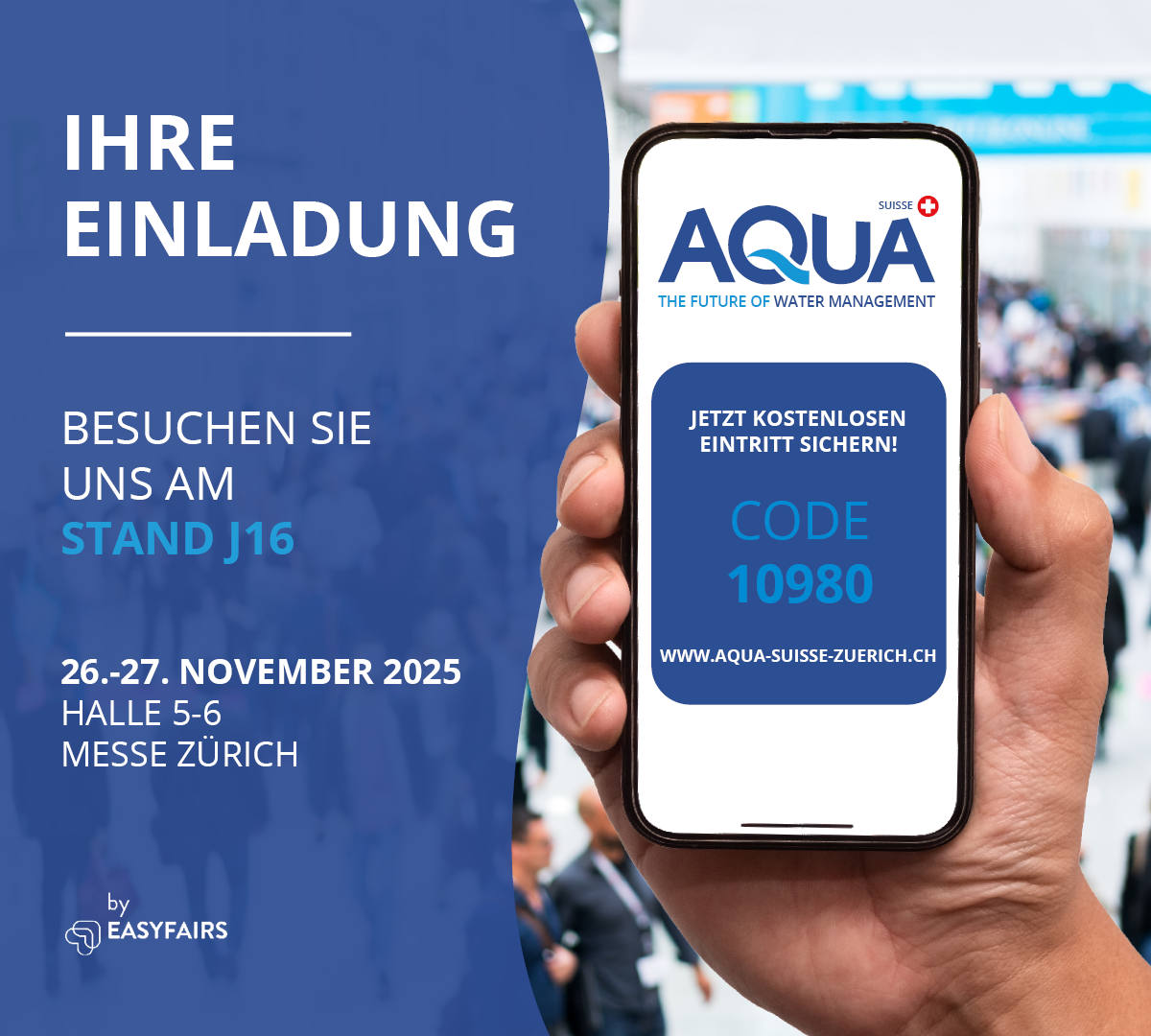 Die AQUA Suisse in Zürich hat sich als verlässlicher Treffpunkt für Fachbetriebe aus dem kommunalen und industriellen Wassermanagement etabliert. Auch in diesem Jahr sind wir vor Ort.